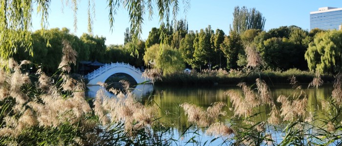 这张照片名为《谢谢你这么好看还点赞》,照片拍摄于北京理工大学良乡校区北湖,这一方天地被秋日装点得如诗如画。画面中央是一座洁白的拱桥,横跨碧波荡漾的湖面,倒影在水中,与四周的景色融为一体。湖岸边,茂密的芦苇随微风轻轻摇曳,金色的芦花在阳光下熠熠生辉,仿佛在低声诉说着秋天的故事。垂柳的枝条从上方垂下,为画面增添了一丝灵动之美。远处的树木繁茂,绿意仍在,透露着晚秋不舍的温柔。而高楼的身影隐约可见,为这片宁静的自然风光注入了一丝现代校园的气息。这是北京理工大学良乡校区的秋,有一份清新与祥和的诗意栖居。《谢谢你这么好看还点赞》这个名字赋予了这张照片一份轻松幽默的温暖感,与画面中静谧而诗意的校园风景形成了奇妙的对比。仿佛这片湖光水色、这座洁白的拱桥和摇曳的芦苇,都在默默地回应着这个标题:自然的美好无需修饰,它本身就值得所有的点赞。名字与景色结合,既传递了对美景的由衷喜爱,也表达了那份希望分享美好、被世界认可的心情。愿大家往后余生,处处是美景作伴,时时是好友相随。