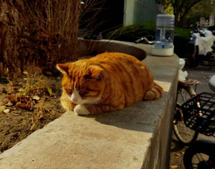 这张照片名为《秋历》。在阳光洒满的午后,一只橙白相间的猫慵懒地趴在石墙上,闭着眼睛,似乎在享受冬日的暖阳。它的身影被柔和的光线勾勒出温暖的轮廓,毛发的纹理清晰可见,如同被阳光亲吻过的橙子一般温润可人。背景中的树枝微微枯黄,几片落叶散落在旁,诉说着季节的更替。远处的水桶和自行车则为画面增添了几分生活的气息,这宁静的一刻仿佛凝固了时光,让人感受到平凡日子里的美好与温馨。《秋历》这个名字更为这张照片增添了一层诗意。仿佛这一刻的阳光、一只慵懒的猫、一墙的岁月,都是秋天时光里的一个小标记,就像翻过的一页日历。这张照片以简单而真实的生活画面,将秋天的静谧与温暖定格成一幅自然的画卷,名字《秋历》则让人联想到每一页日历后,都是独属于那一天的故事与温度。愿大家生活的每一天也都充满着故事与温度。